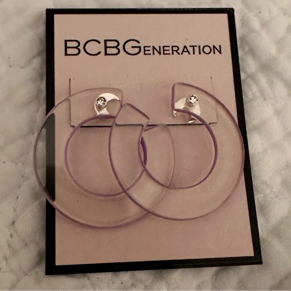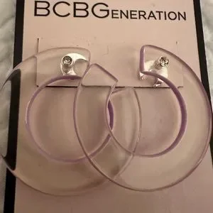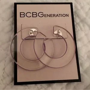 Bcbg clear hoops with silver removable Moons NWT SMOKE FREE HOME WITH SMALL DOG