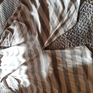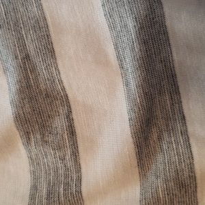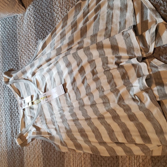 Tunic length grey snd ivory sleeveless shirt. partial split in the back for added detail.