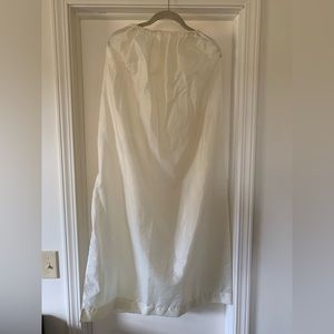 Slip is light weight, 3’5” to increase opaqueness of empire skirt if needed for direct sunlight