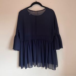Adorable BCBGeneration Navy Blue Sheer Peplum 3/4 Sleeve Top