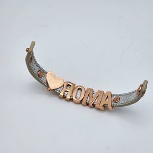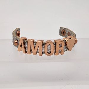 Amor Love Heart Metallic Leather Cuff Bracelet