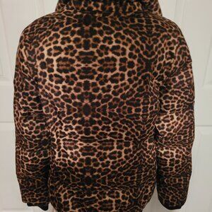 BCBG Puffer Jacket. Cheetah print (black and tan), new condition. This is a comfortable hooded jacket that is easily dressed up or down.
