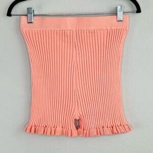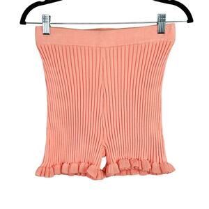 BCBGeneration Apricot Blush Peach Ribbed Knit Ruffled Stretch Shorts Small NWT