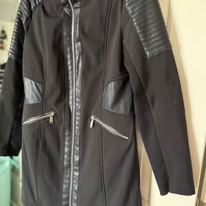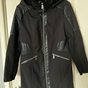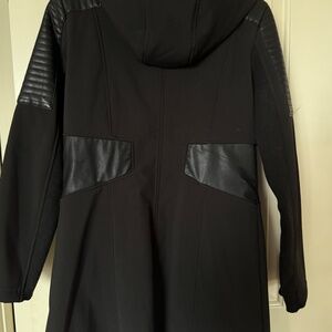 BCBGeneration Asymmetrical Faux-Leather-Trim Hooded Walker Coat - M