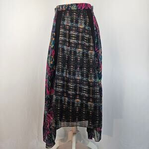 BCBGeneration Asymmetrical Lace Boho Floral Tapestry Sheer Chiffon Maxi Skirt S