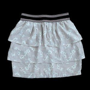 BCBGeneration Beige Pink Black Layered Printed Elastic Waist Zipper Mini Skirt S