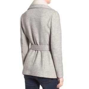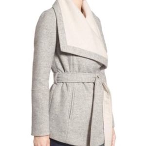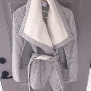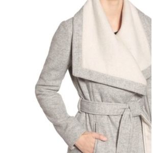 Grey and cream wrap coat by BCBGeneration in a size XSmall. In like new condition. Only worn once after purchase, and I’m selling it because I’m expecting a baby, so I’m sure this probably won’t fit me this winter.