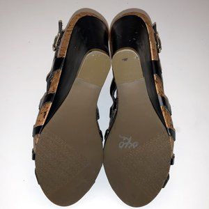 BCBGeneration Black & Beige Cork Design Strappy Slingback Wedge Sandal Shoes 6