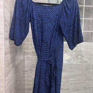 BCBGeneration Black Blue Wrap Dress 3/4 Sleeves Midi Length V-Neck Size XSmall