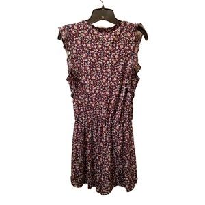 BCBGeneration Black Burgundy Blue Stretch Floral Romper Ruffles Pockets XXS