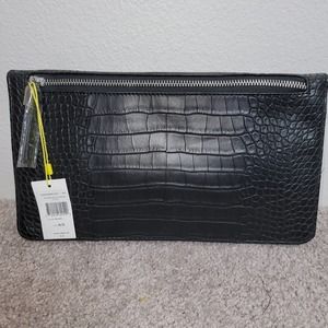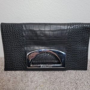 BCBGeneration Black Croc Embossed Foldover Clutch NEW