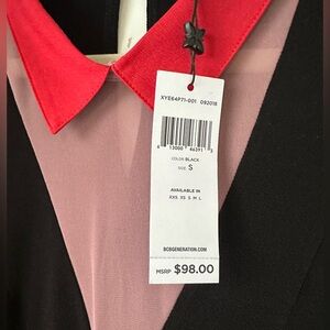 Chic BCBGeneration dress with a striking red collar. Sleek black design for versatile wear.