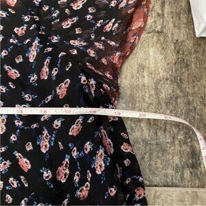 BCBGeneration Black Floral Boho Sheath Dress Small Flutter Sleeve Flowy Dress