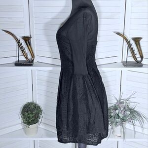 BCBGeneration Black Floral Crochet Bell Sleeve Dress Size 0