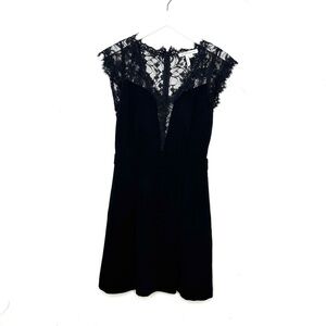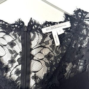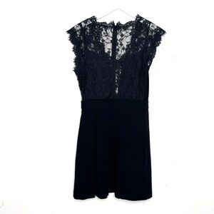 Stylish dress with intricate black lace overlay. Ideal for elegant events.
