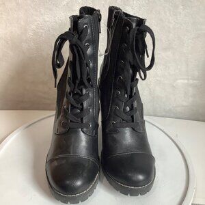BCBGeneration Black Lace-Up High Heel Ankle Booties Side Zip Rugged Sole Women 9