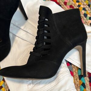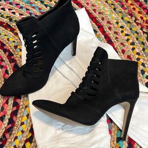 Chic Blakc leather, tuxedo cutout BCBG ankle booties!