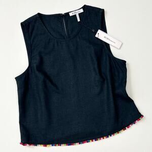 BCBGeneration Black Linen Blend Pompom Trim Sleeveless Top NWT