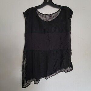 BCBGeneration Black Mesh Back Asymmetric Muscle Sleeveless Tank Top Blouse Sz XS