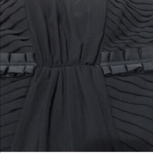 This elegantly pleated strapless dress features a cinched belted waist and soft draping detail