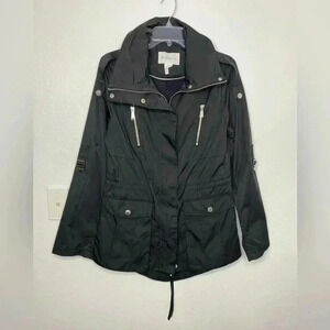 BCBGeneration Black Nylon Trench Hidden Hooded Anorak Coat