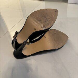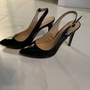 BCBGeneration Black Patent Leather Slingback Heels women’s Size 9.5. Light wear, great condition. Heel Height is 4 Inches. Adjustable slingback strap with gold hardware.