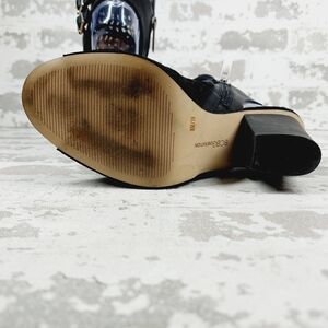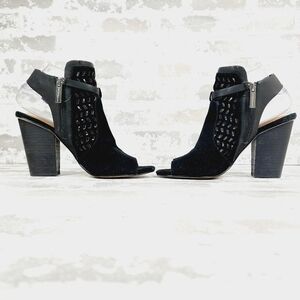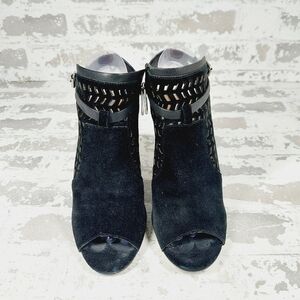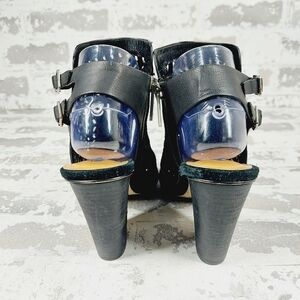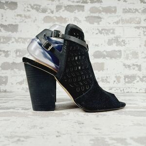 BCBGeneration Black Perforated Suede Block Heel Buckle Up Sandals K941