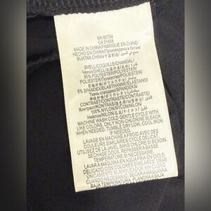 Chic black blouse with sheer lace panels. Features a stylish peplum hem. Perfect for versatile styling.