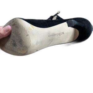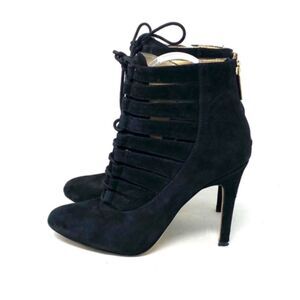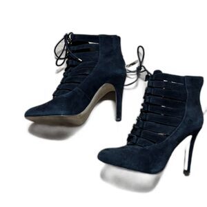 BCBGeneration Black Suede 4 Inch Lace Up Ankle Height Heeled Booties