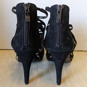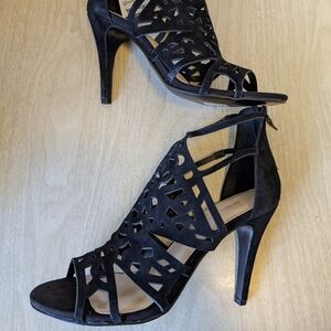 BCBGeneration Black Suede Stiletto Heels with Intricate Cut-Out Design 8.5