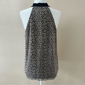 BCBGeneration Black & Tan Leopard Print Tie Neck Tank Top