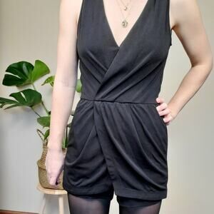 BCBGeneration Black VNeck Faux Wrap Gathered Tank Romper Womens XSmall