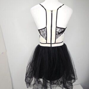 BCBGeneration Black White Lace Tulle Raceback Mini Party Prom Dress
