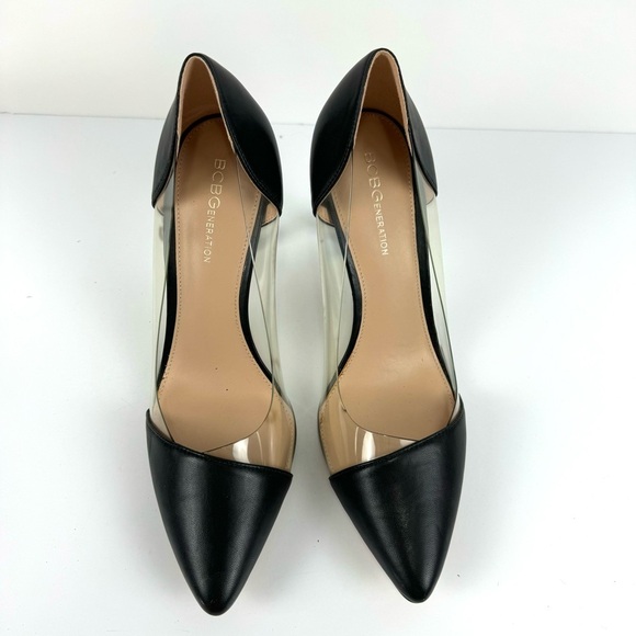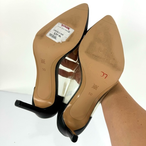 Elegant black heels with clear accents. Sleek pointed toe design. Perfect for any occasion.
