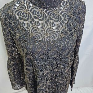 BCBGeneration Black and Gold Lace Bell Sleeve Mini Dress Size XS