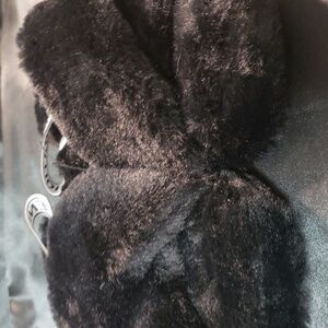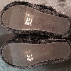 BCBGeneration Black faux fur criss-cross, heel strap slippers