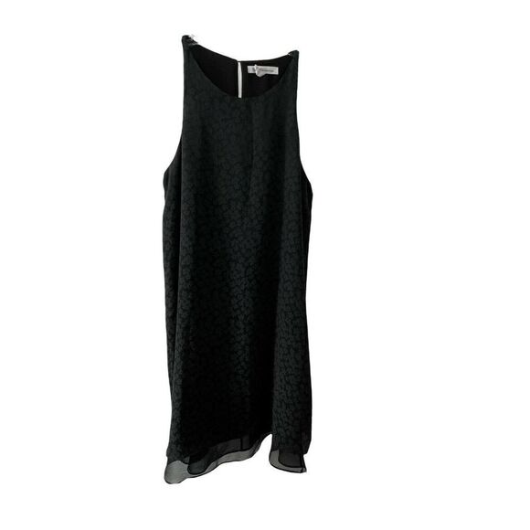 BCBGeneration Solid Black With Subtle Daisy Floral Pattern Silky Sleeveless With Layered Ruffle Hem Dress Y2K Vibes, So Many Ways To Style, Classic or Rock It With Some Combat Boots!!!