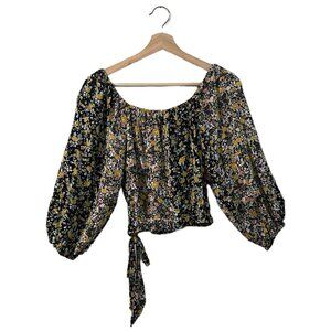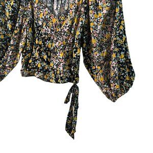 BCBGeneration Blouse Size Small Garden Floral Surplice Wrap Crop Top V Neck