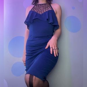 BCBGeneration Blue Bodycon Lace Detail Ruffle Classy Evening Dress 4