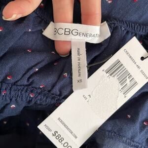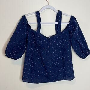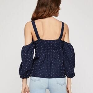 BCBGeneration Blue Swiss Dot Cold Shoulder Blouse NWT XS