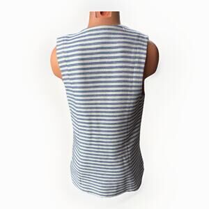 Pit to pit 16. The BCBGeneration Blue White Striped Vest in size XS is a stylish and sophisticated addition to any woman's wardrobe. Made from a blend of polyester, rayon, wool, and acrylic, this preppy vest features a V-neckline, sleeveless design with strappy sleeves, and a hook and eye closure for a chic look. The textured accents and multicolor striped pattern add a touch of luxury to this tunic-style top, perfect for layering over your favorite outfits for a fashionable ensemble.