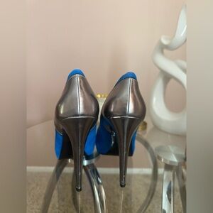BCBGeneration blue and silver color block heels. Black bottoms. Perfect for any occasion, these shoes get so many compliments! Gently used size 7.5.