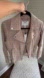 Two pocket, blush pink, light pink, suede, motorcycle, biker, moto. Quilted detailing at shoulder and upper arm. Braided leather detail on zipper pockets. Zippers at cuffs. Silver toned hardware.