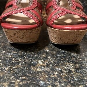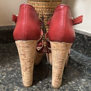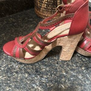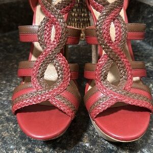 BCBGeneration Braided Red And Brown Strappy Heels With Cork Bottom