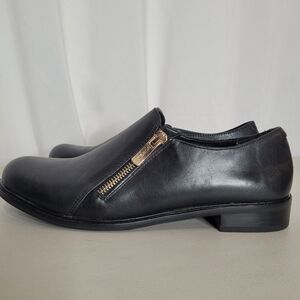 BCBGeneration Brandi Black Leather Side Zip Slip On Loafers - Size 7.5