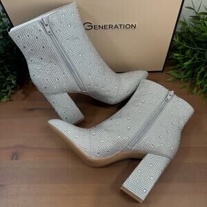 BCBGeneration Briel 2 Sparkle Silver Heeled Bootie Boots Size 5.5