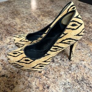 BCBGeneration Brown Y2K 2000s Patterned Parade Heels Women Size 8