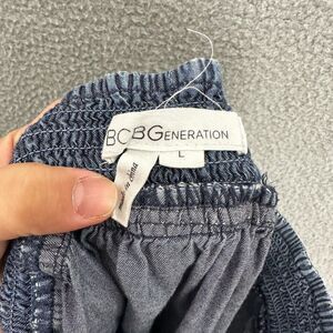 BCBGeneration Bubble Mini Skirt Womens Large Blue Chambray Embroidered Boho Y2K
