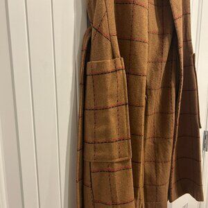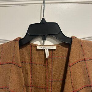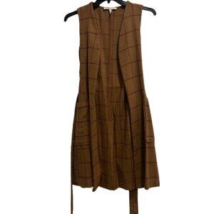 BCBGeneration Carmel Plaid Long Faux-Wool Tie Vest Shacket Women’s Size Small