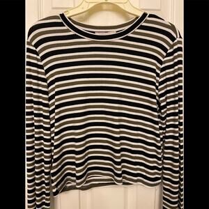BCBGeneration Casual Crew Neck Stripe Ribbed Top size Large